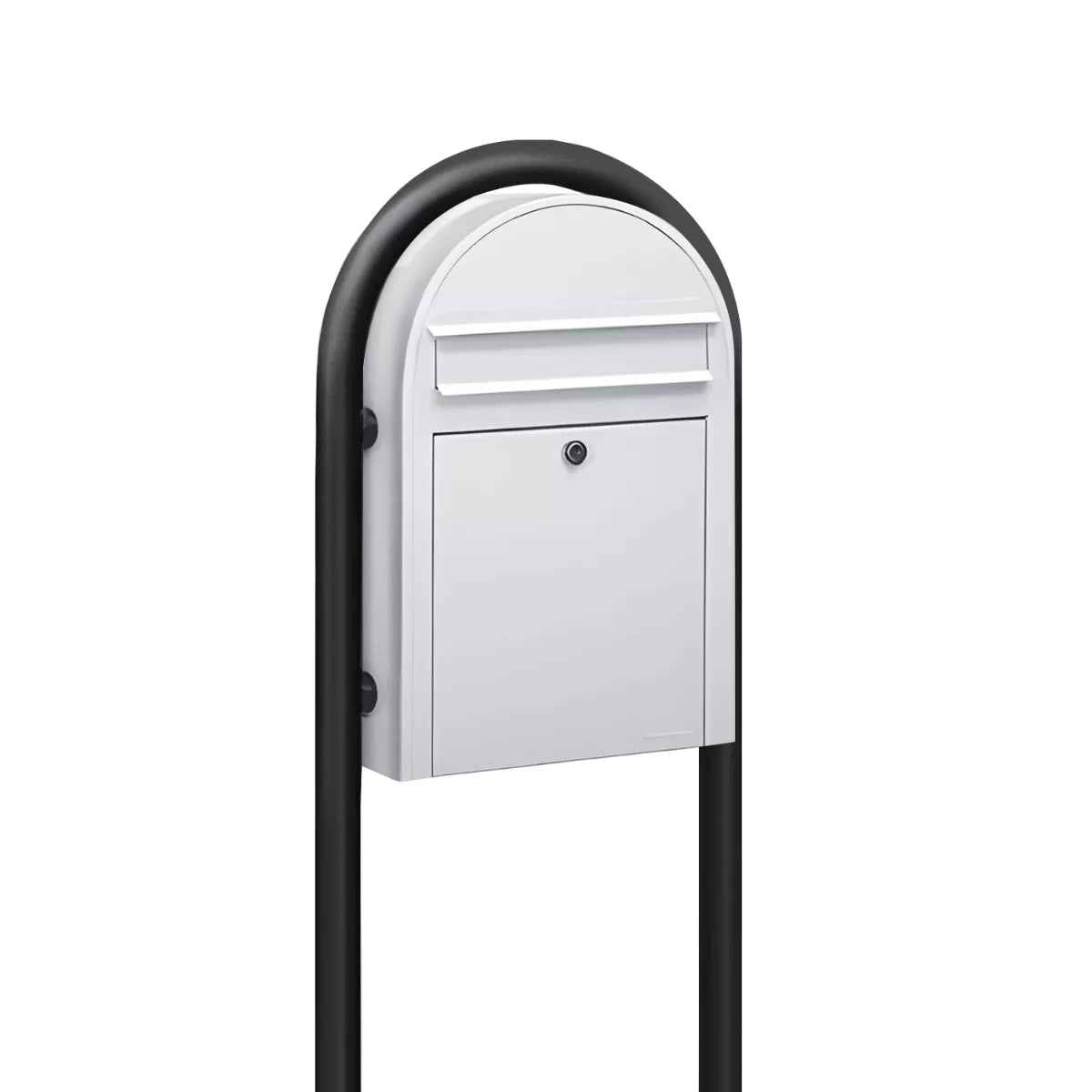 Sleek, Secure, and Stylish: Bobi Classic Slim White Mailbox with Round Black Post Combo