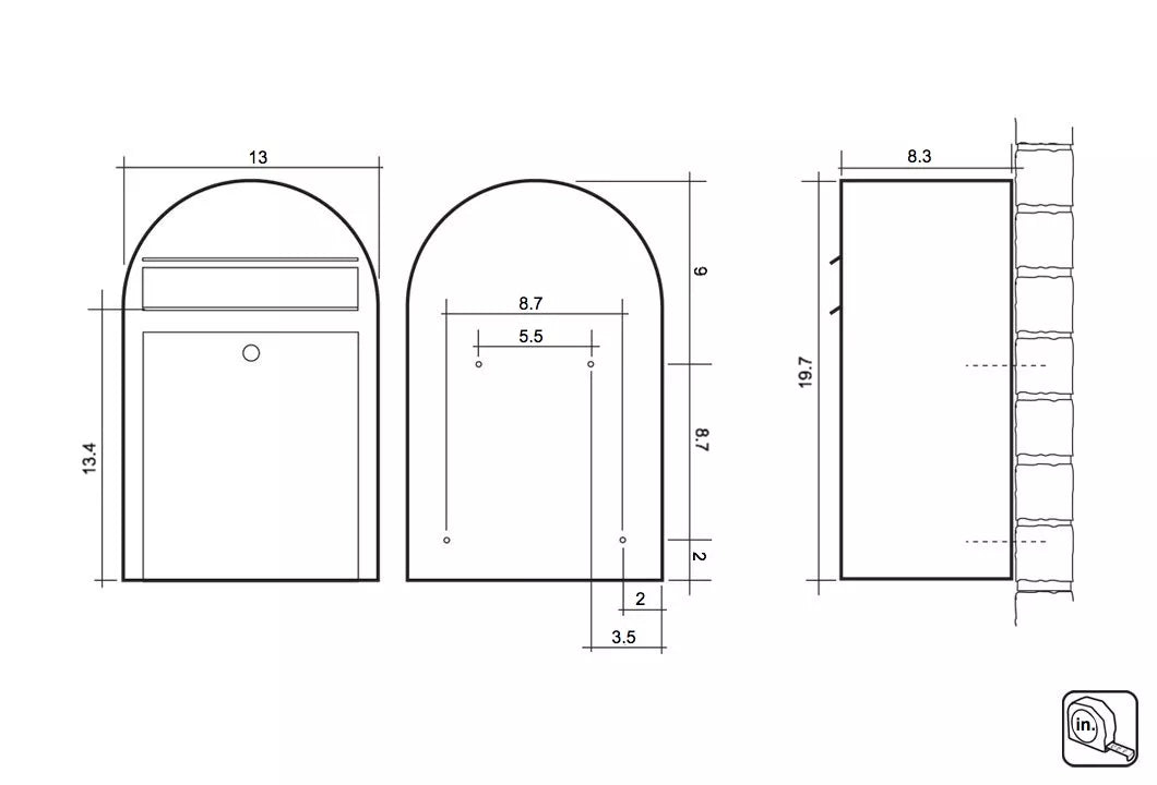Compact yet functional, the mailbox measures 12.6 inches wide, 19.7 inches high, and 8.3 inches deep, offering ample space for letters and small packages. The 2-inch x 10.25-inch mail slot is perfectly sized to accommodate your daily deliveries while keeping them secure and protected from the elements.